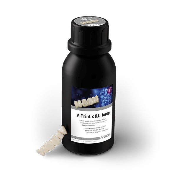 <b>Resina fotopolimerizzabile per la produzione generativa di provvisori altamente estetici, a lungo termine</b> • Materiale da stampa altamente riempito, specialmente adatto per provvisori a lungo termine • Eccellenti proprietà fisiche • Elevata resistenza alla flessione e alto modulo di elasticità per provvisori stabili • Elevata resistenza all'abrasione per un provvisorio a lungo termine • Basso assorbimento d'acqua e bassa solubilità in acqua per una maggiore stabilità meccanica • Resistente alla decolorazione e non si scolora neanche a lungo termine • Fluorescenza naturale per elevate esigenze estetiche • Facile lavorazione e lucidatura • Composite da stampa, facile da personalizare e adattare Confezione: flacone da 500 gr.