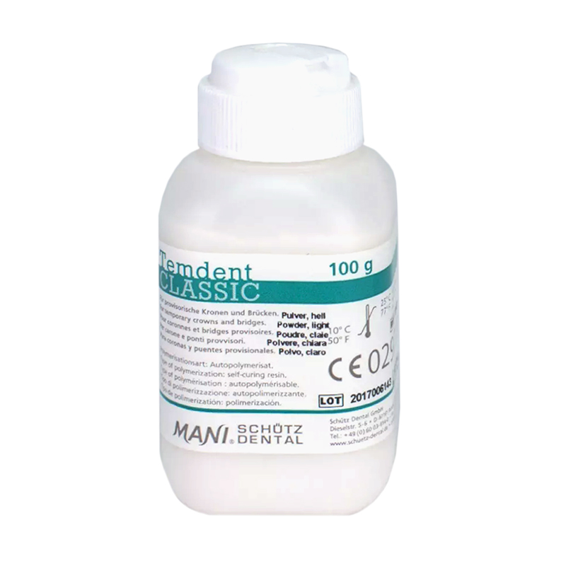 Autopolimero a base di PMMA con solo lo 0,8% di contenuto di monomero residuo. Indicato per corone e ponti temporanei. Confezione: polvere 100 gr CHIARA