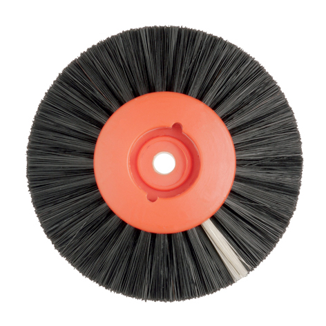Spazzola per pulitrice con centro in plastica, in setola di Chungking nera super extra dura, Ų 80 mm. 4 strati per 21 mm convergenti – confezione da 1 pz. 4R 80 121 HoPla Hatho Le spazzole HATHO per pulitrice, con nottolino centrale in legno inserito nella plastica (HoPla) vengono prodotte con setole Chungking di prima qualitą e con altri tipi di setole sempre sceltissimi. Il nottolino di legno, inglobato nel centro di plastica, consente di fissare e togliere facilmente le spazzole HoPla dal mandrino conico della pulitrice. Queste spazzole sono prodotte con folti mazzetti di setole, ben ancorati al centro in plastica, e questo contribuisce considerevolmente all'alto standard qualitativo delle spazzole HoPla HATHO. Le spazzole per pulitrice con setole pił lunghe e quindi pił morbide, si utilizzano per la prelucidatura di resine per protesi, compositi e leghe di metalli nobili. Le spazzole per pulitrice con setole pił corte, e quindi pił dure, sono utilizzate in modo particolare per metalli non preziosi e cromo cobalto.