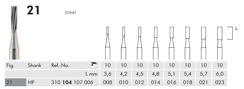 Frese acciaio per manipolo dritto HP 104 figura 21 016 (ISO 107006) confezione da 10 pz. Meisinger
