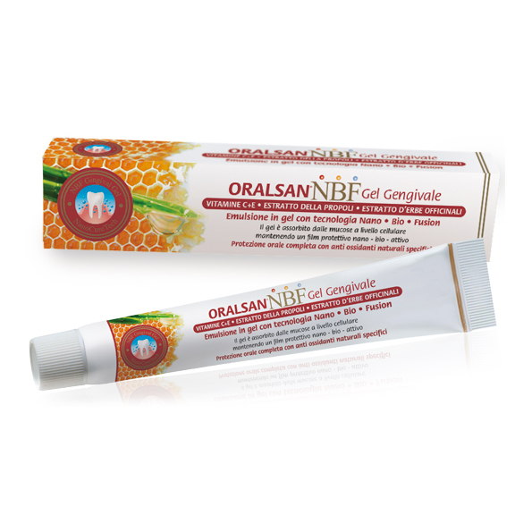 • PROTEZIONE ORALE COMPLETA con anti ossidanti naturali specifici.• TECNOLOGIA NANO BIO FUSION per una rapida ed efficace azione a livello cellulare.• 3 SOLUZIONI IN 1 SOLO PRODOTTO: gel topico, coluttorio, dentifricio.Il Gel Gengivale OralsanŽ NBF č un gel altamente bio-funzionale basato sulla Tecnologia Nano Bio Fusion che, per la prima volta, ha creato un processo di Nano Bio Fusione in cui la Nano tecnologia si fonde con la Biotecnologia.Il risultato č la creazione di una nano emulsione, composta da antiossidanti quali Vitamina C, Vitamina E ed estratti naturali della Propoli, in una forma altamente efficiente in grado di penetrare nelle cellule pių facilmente e rapidamente.