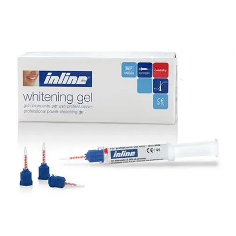 Sbiancamento ambulatoriale Inline Whitening gel perossido d'idrogeno al 38% – kit composto da 2 siringhe di perossido, 1 siringa di diga liquida, puntali – prodotto cosmetico riservato agli odontoiatri ed agli igienisti dentali