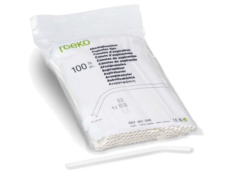 Cannule monouso non sterili in plastica Ø 6,5 mm, con puntale Ø 4,8 mm. – confezione da 100 pz. + adattatore doppio 461 048 RoekoCannule monouso in plastica,