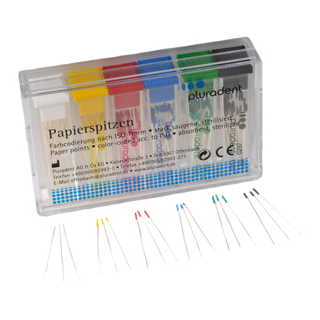 Per asciugare canali radicolari e applicare soluzioni antisettiche e disinfettanti al tessuto periapicale. Dimensioni e codice colore standardizzati secondo lo standard ISO 6877. Alta assorbenza, dimensionalmente stabile, privo di additivi chimici.