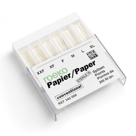 CONI CARTA XXF exNOVO Cassetto 200pz ExExtraFine Roeko 342001Punte di carta di forma ottimale per una migliore asciugatura del canale radicolare. Scatola a cassetto richiudibile.CONI CARTA TRADIZIONALI PAPIER PAPER CONVENTIONAL WEISS CONTENITORE A CASSETTO