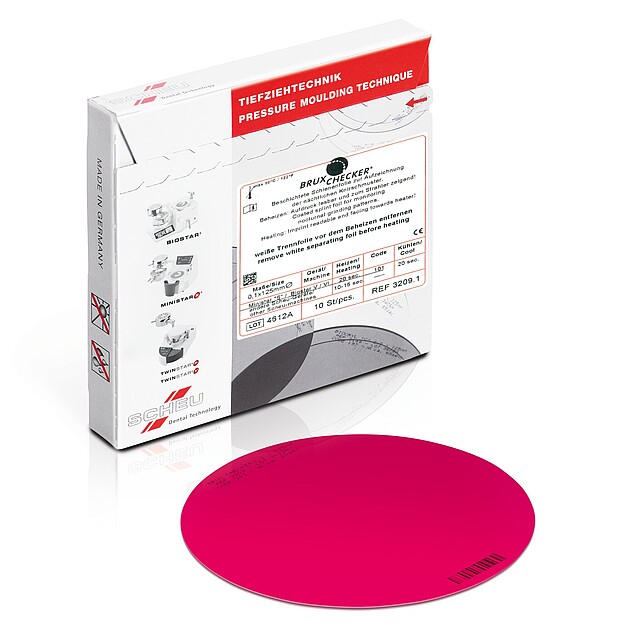 Pellicola con rivestimento colorato su un lato per l'analisi e la pianificazione della terapia in caso di bruxismo e CMD, nonché per il controllo e la molatura di restauri protesici.