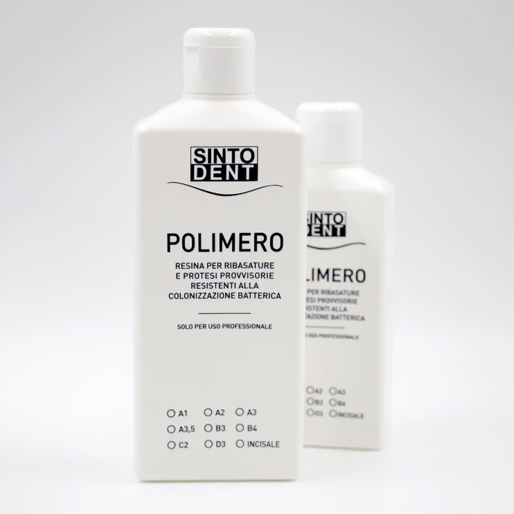 Resina per provvisori Polimero – ricambio polvere A3 250 g. Sintodent Resina per ribasare e realizzare ponti e corone provvisorie resistenti alla colonizzazione batterica. Riduce il rischio di infezioni parodontali, oltre al sanguinamento ed agli stati infiammatori dei tessuti gengivali. Da utilizzare sia in laboratorio per la realizzazione della protesi e la ribasatura indiretta che in studio per la realizzazione della protesi diretta e della ribasatura diretta. SINTODENT è un dispositivo medico di classe II A conforme alla direttiva 93/42 CEE.