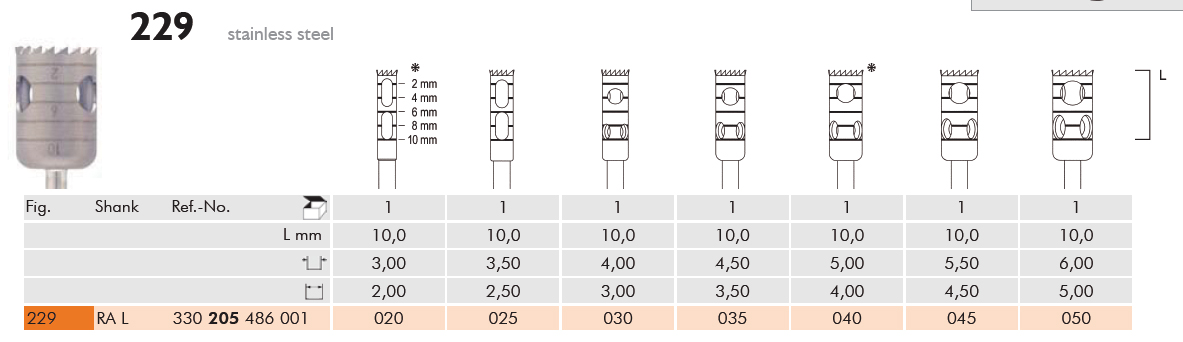 FRESA CAROTATRICE PER PRELIEVI OSSEI PROG/STD 229 205 035