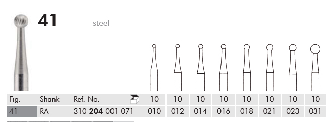 Frese acciaio per contrangolo CA 204 41 014 (ISO 001071) confezione da 10 pz. Meisinger