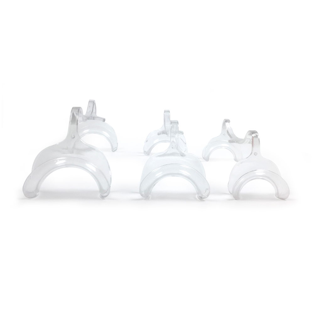 BlancOne® Apribocca Autoclavabile Gli apribocca BlancOne® sono stati disegnati con il ferma lingua per maggior confort del paziente ed evitare che questa vada ad interferire con il gel sbiancante, specie se ad alte concentrazioni. Sterilizzabili in autoclave.