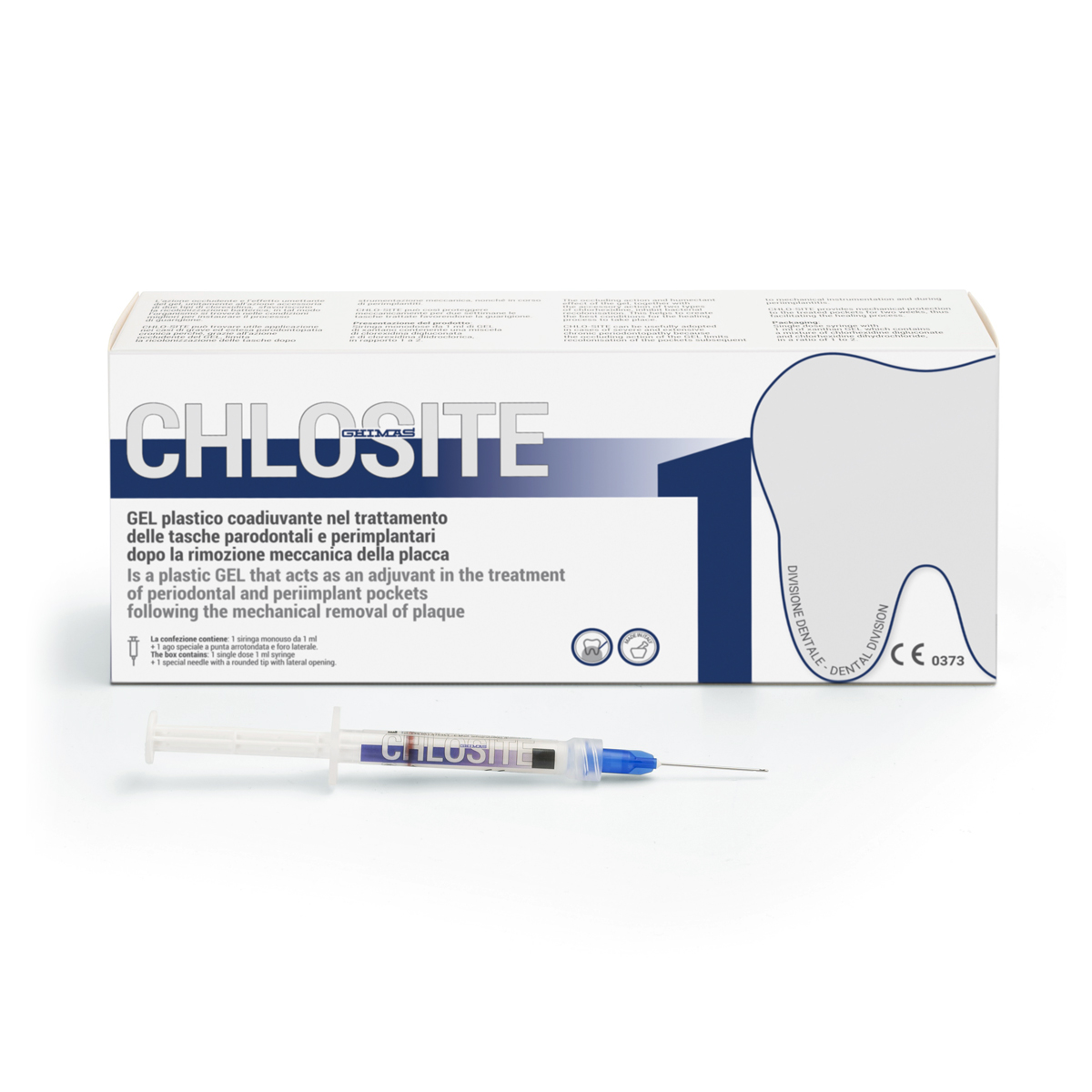 GEL coadiuvante nel trattamento delle tasche parodontali e perimplantari dopo la rimozione meccanica della placca dalle tasche stesse. L’azione occludente e l’effetto umettante del gel, unitamente all’azione accessoria di due tipi di clorexidina, che proteggono il gel, sfavoriscono la ricolonizzazione batterica; in tal modo l’organismo potrà re-instaurare il processo di guarigione. CHLO-SITE può trovare utile applicazione nei casi di grave ed estesa parodontopatia cronica perché, grazie all’azione occludente del GEL, limita la ricolonizzazione delle tasche dopo pulizia chirurgica (SRP), e in caso di perimplantiti. CHLO-SITE protegge meccanicamente per due settimane le tasche trattate favorendone la guarigione. Confezione: 1 siringa monouso da 1 ml + 1 ago