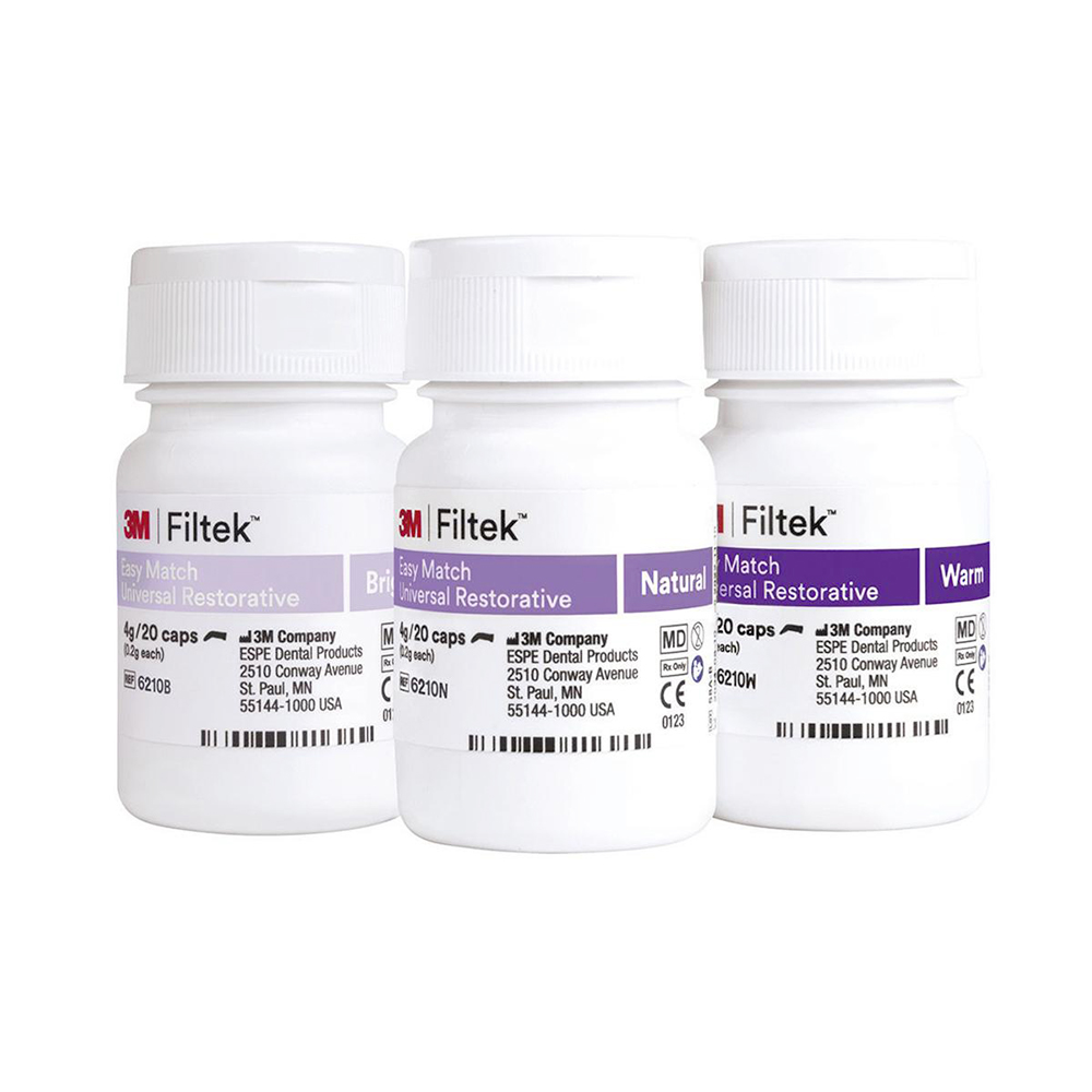 Selezione semplificata del colore per restauri single-shade anteriori e posteriori. Solo tre tonalità (Bright, Natural e Warm) che coprono i colori della scala VITA classical. L'opacità si adatta naturalmente al colore del dente mostrando una traslucenza simile allo smalto, dove serve: sul bisello e sul bordo incisale. Eccellente mantenimento della lucidatura e corrispondenza cromatica Eccellente forza e resistenza all'usura Ottima lavorabilità e mantenimento della forma Con la stessa VERA nanotecnologia che sta alla base dei principali compositi dentali 3M™ Filtek™ Grazie alla capacità dell'opacità che si adatta naturalmente al colore del dente e ad oltre 50 anni di scienza ed innovazione nel campo dei compositi dentali, il composito 3M™ Filtek™ Easy Match Universal offre un sistema semplice ed intuitivo di selezione del colore per semplificare le procedure di restauro diretto senza compromettere l'opacità. Questo sistema a 3 colori è stato progettato per fornire un'eccellente match cromatico nella maggior parte dei casi clinici, in modo semplice e intuitivo. Confezione: 20 caps da 0,2 gr cad.