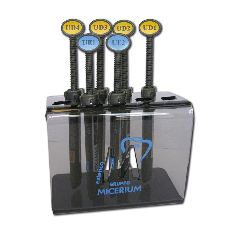 ENAMEL PLUS HRI SYR TrialKit 6x2,5gm UD1,2,3,4+ U2,3 CHR6B Micerium La soluzione estetica per ogni tipo di restauro, margini invisibili, migliore compattezza e lucidabilità, dentine con caratteristiche calibrate sulla dentina naturale.