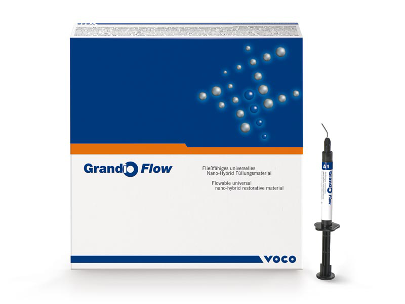 GRANDIO FLOW SYR ric.A1 2x2,0gm 1863 VocoMateriale da restauro fluido nanoibrido universale. Indicato per: otturazione di piccole cavità, sigillo di fessure estese, bloccaggio di sottosquadri, rivestimento di cavità (tecnica con liner, tecnica CBF), cavità di classe III e V, cementazione di pezzi protesici traslucenti (corone di ceramica, faccette), riparazioni di otturazioni nonché di rivestimenti estetici.