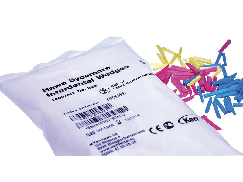 829–70 bianco – confezione da 1000 pz. Kerr HaweSono prodotti in legno di acero che, grazie al proprio coefficiente di compressione, risulta ottimale per l'allargamento degli spazi interdentali, garantendo l'assenza di schegge. La parte lavorante del cuneo presenta una forma anatomica che semplifica la fase di inserimento nelle zone interdentali.